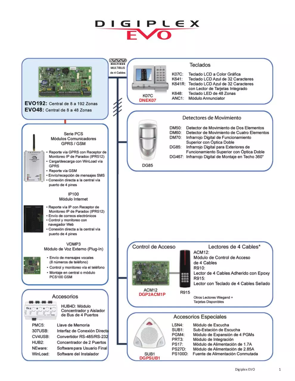Digigard 55 (DG55), Digigard 65 (DG65), los módulos detectores de movimiento Digiplex (DM50 y DM60), Digital Vision (525D) y los