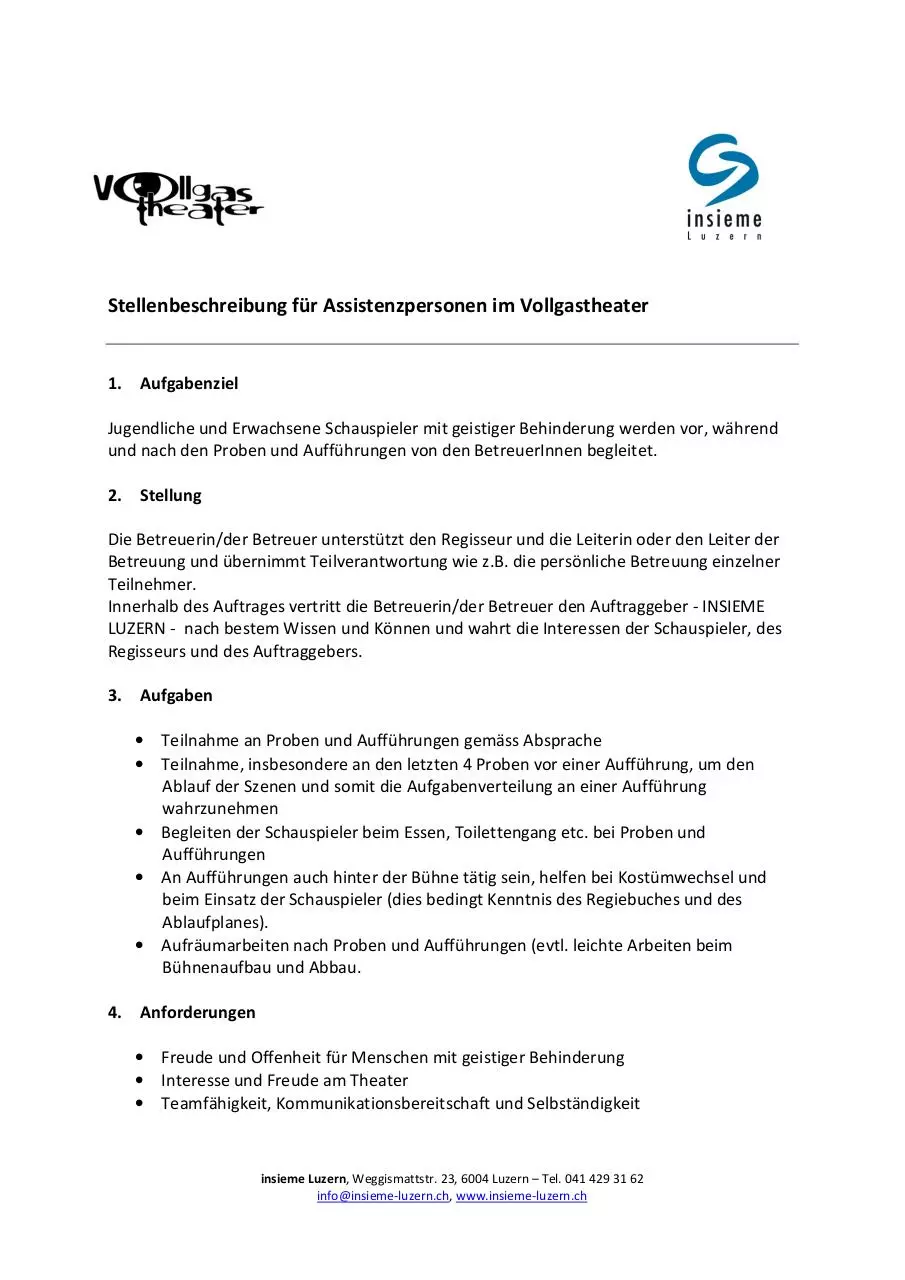 Stellenbeschreibung für Assistenzpersonen im Vollgastheater