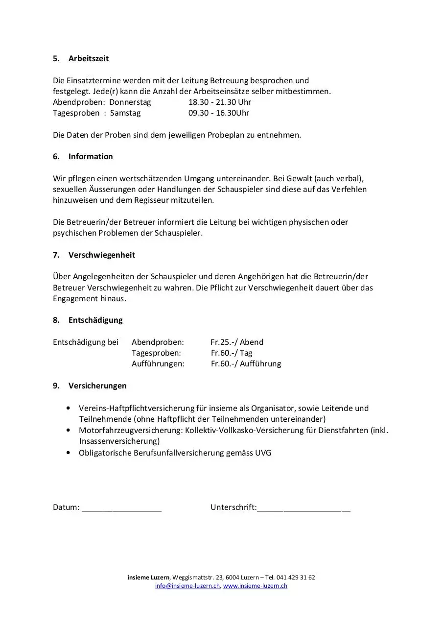 • Vereins-Haftpflichtversicherung für insieme als Organisator, sowie Leitende und