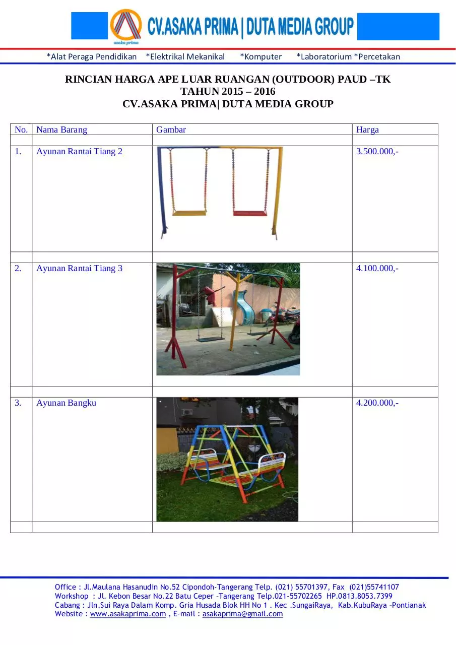 RINCIAN HARGA APE LUAR RUANGAN (OUTDOOR) PAUD –TK