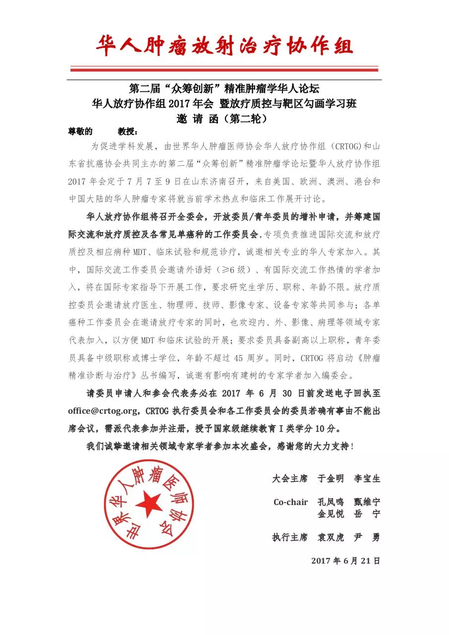 华人放疗协作组将召开全委会,开放委员/青年委员的增补申请,并筹建国